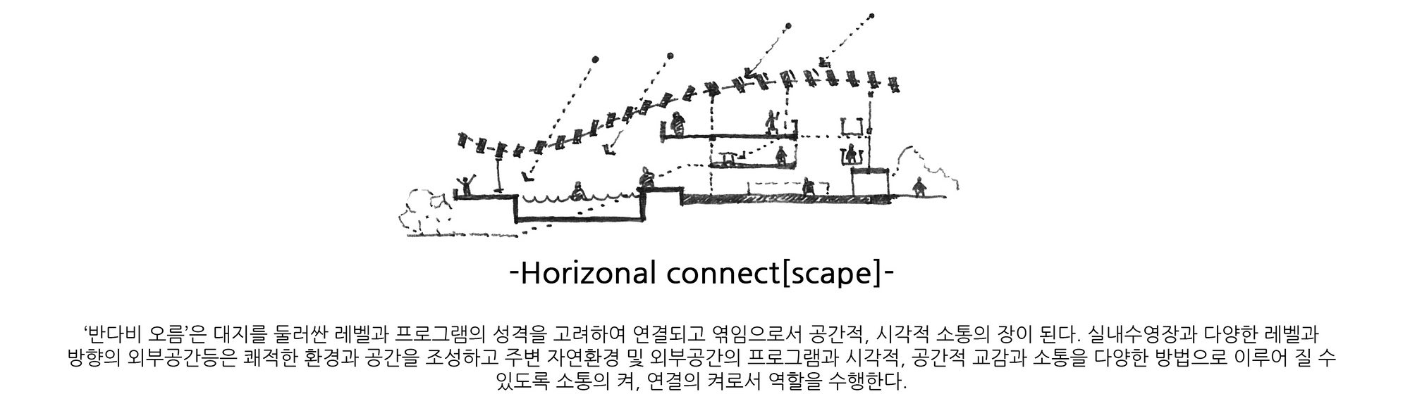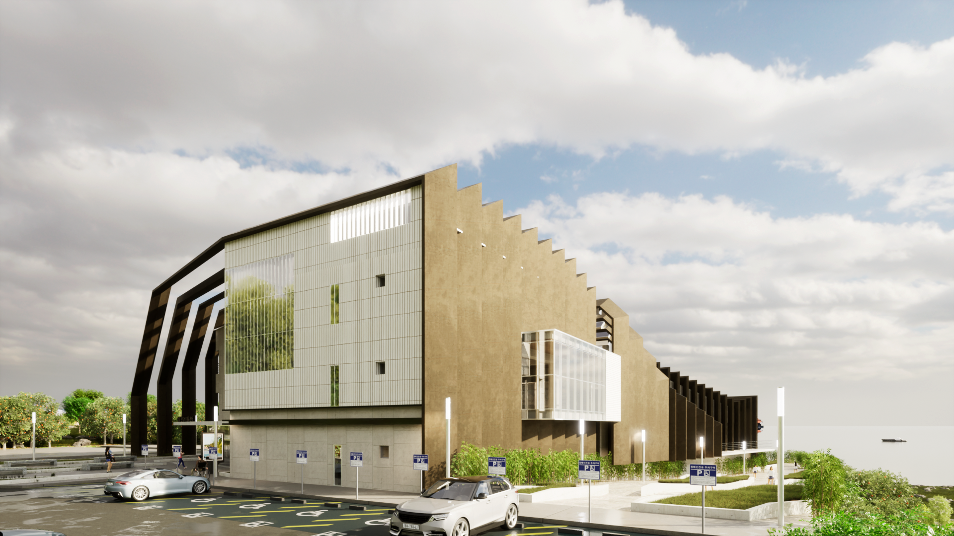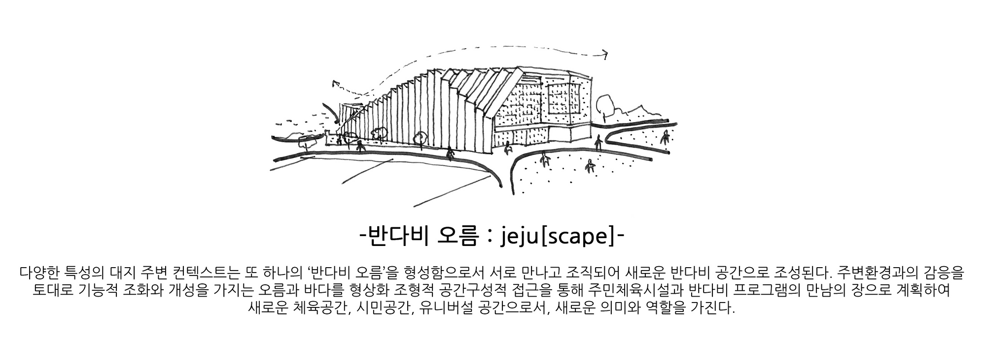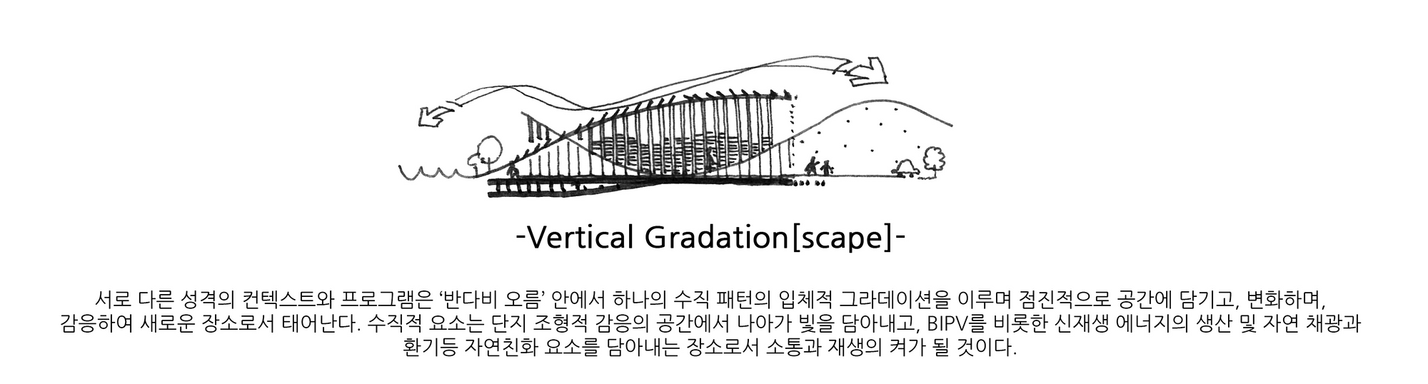 엄폐를 위한 경계는 공간의 성격을 통합하거나 기능적 효과를 더하는 방식으로 공간에 생명을 불어넣는다. 그것의 수직, 수평 레이어들은 마치 오름과 같은 자연공간과 대비되어 누구나 찾게되는 시민의 공간을 표방하고 기능적 특수성들은 그것의 가치를 더하게 한다.