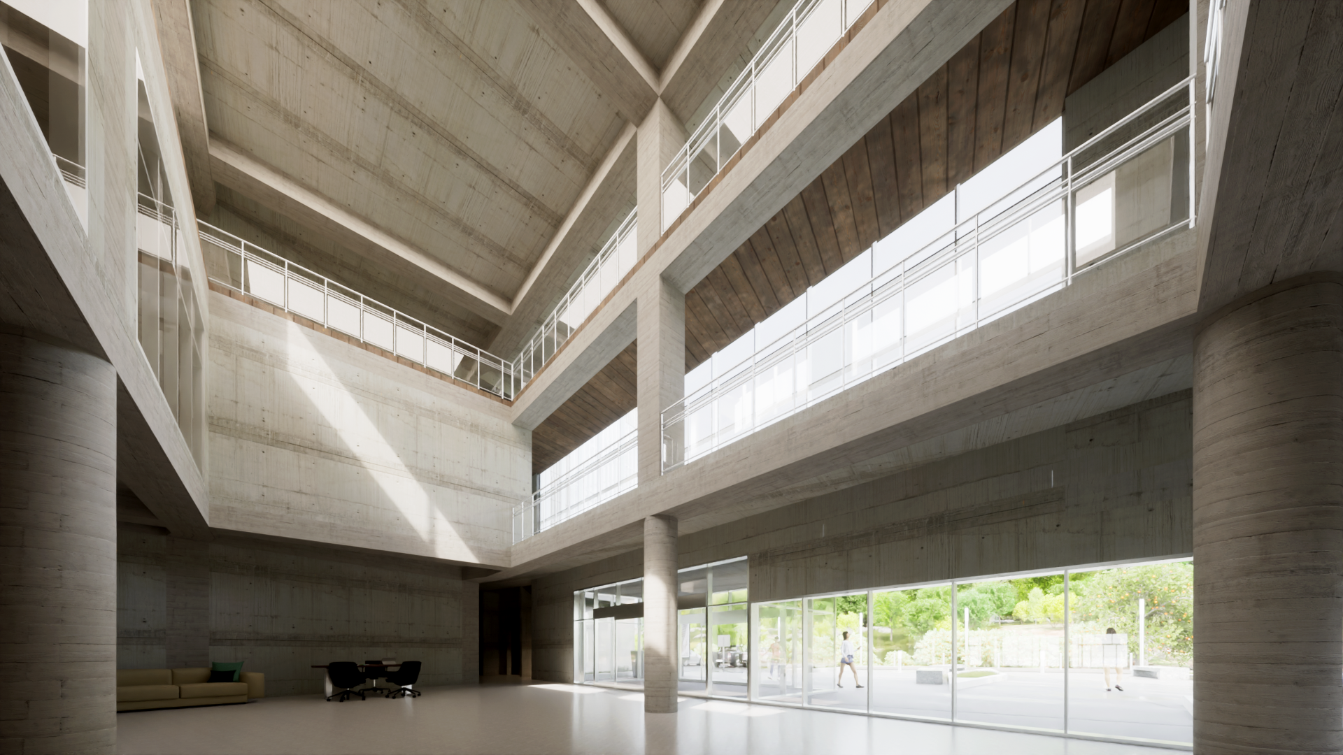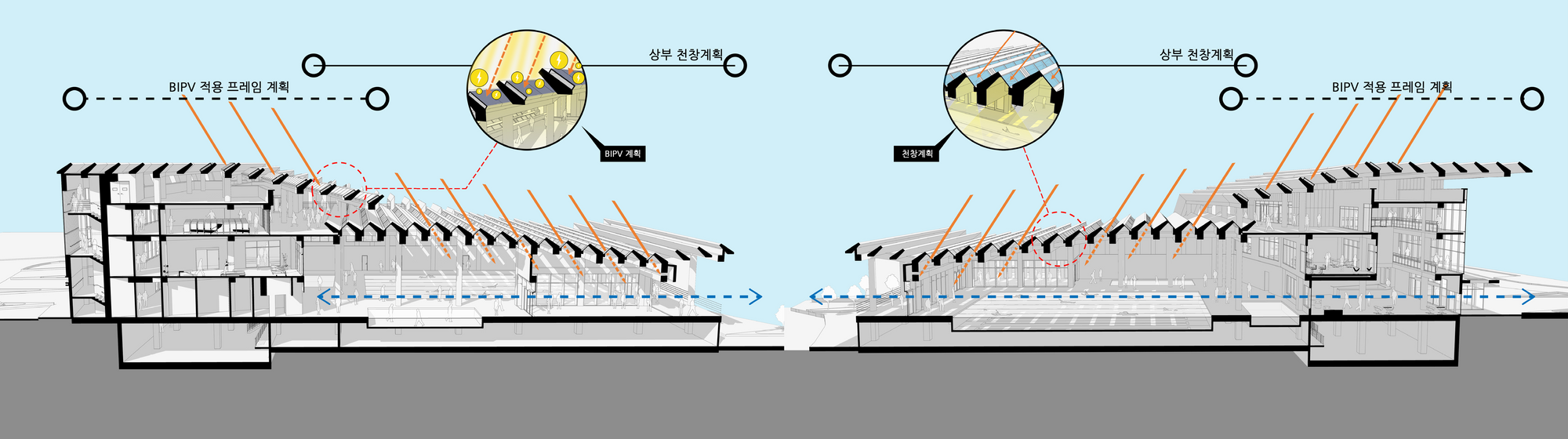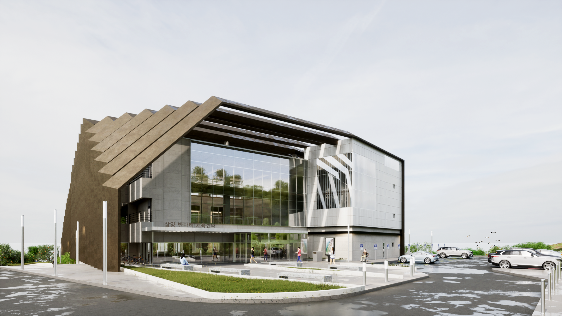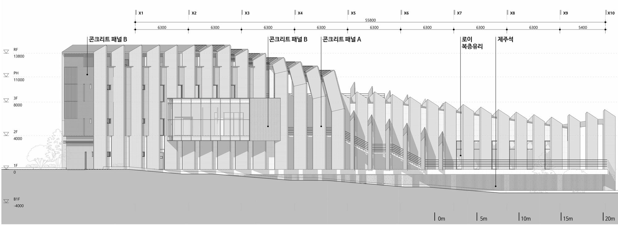 엄폐를 위한 경계는 공간의 성격을 통합하거나 기능적 효과를 더하는 방식으로 공간에 생명을 불어넣는다. 그것의 수직, 수평 레이어들은 마치 오름과 같은 자연공간과 대비되어 누구나 찾게되는 시민의 공간을 표방하고 기능적 특수성들은 그것의 가치를 더하게 한다.